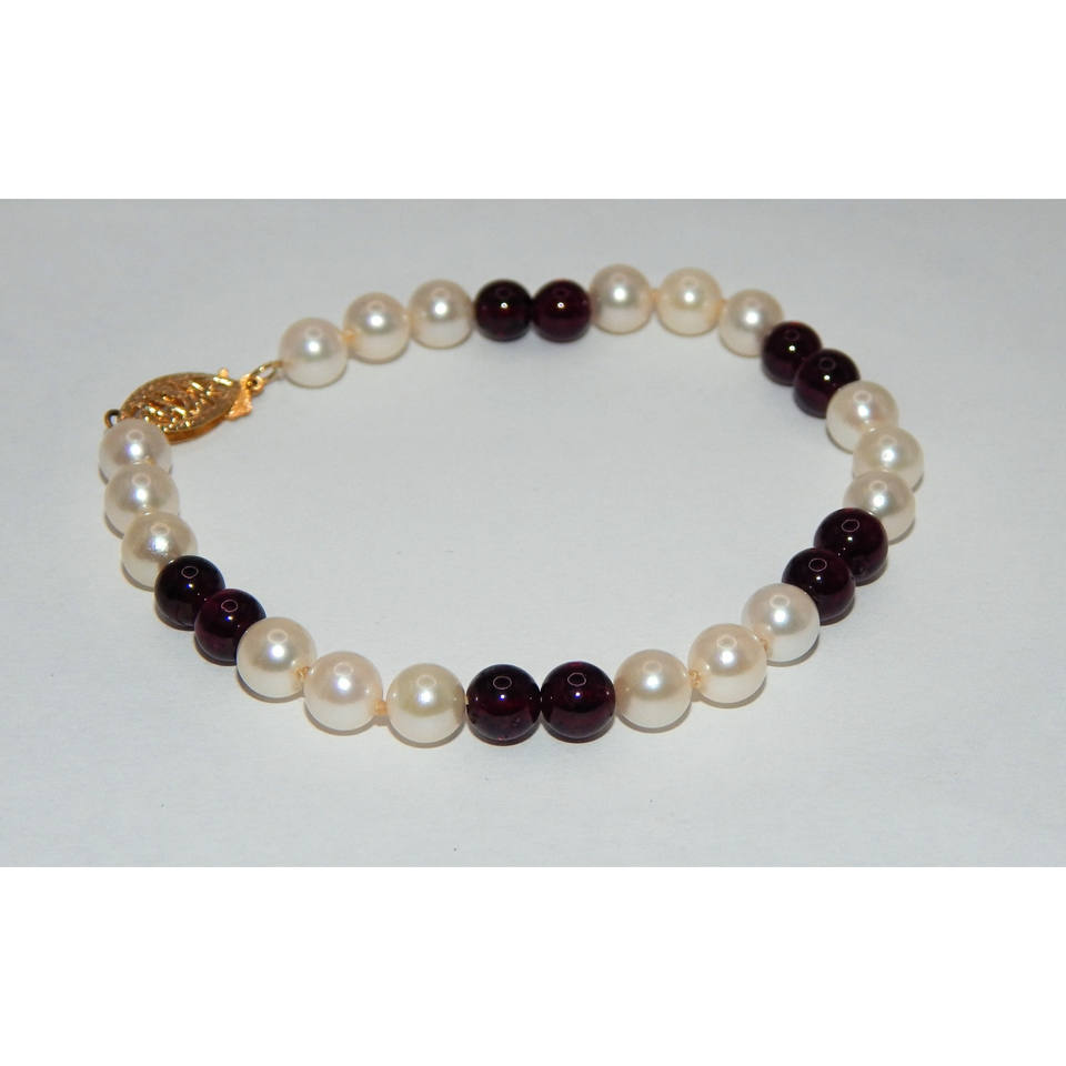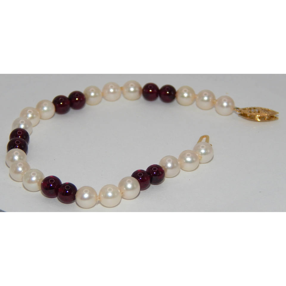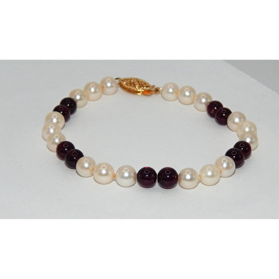 5mm Cultured Pearl and Ruby Gemstone Bracelet with 14k Clasp