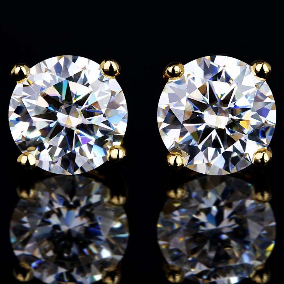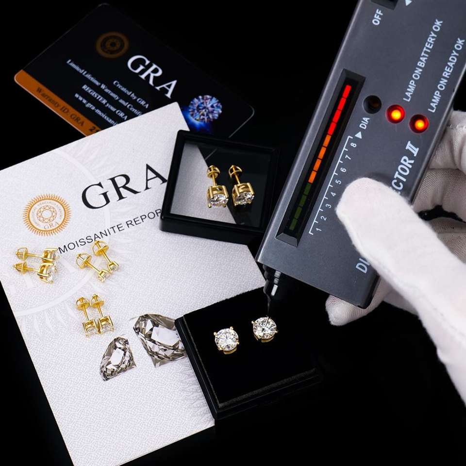 5mm Gold Plated Fine Jewelry Gifts GRA Certificate White Moissanite Round Brilliant Cut Stud Earrings for Women