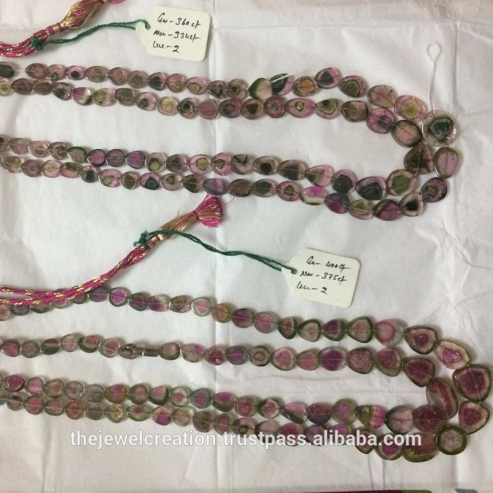 Product Name:Natural Watermelon Tourmaline Smooth Slice Stone Beads Necklace Set