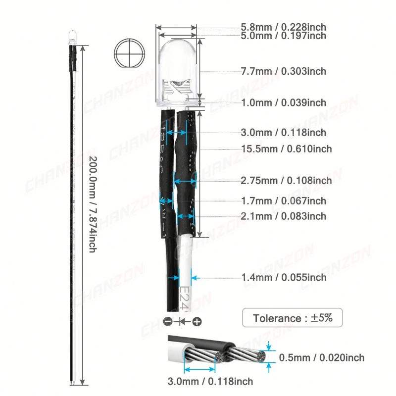 Polarity:Anode (Color Wire) | Cathode (Black Wire)