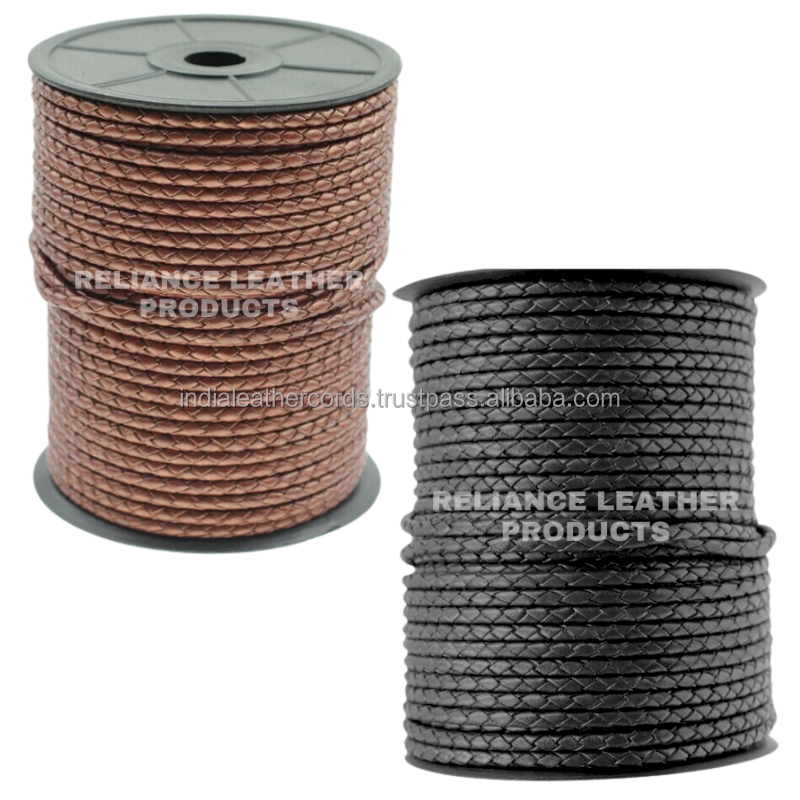 5mm Professional Natural Black Brown Grade Color Round Bolo Braided Leather Cord for Jewelry Designers and Artisan Crafts Supply