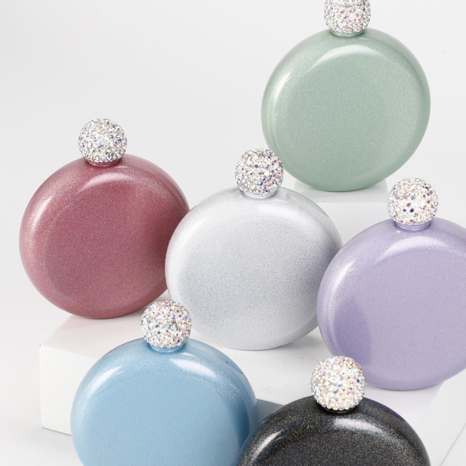 5oz 8oz Hot Selling Cute Liquor Flask for Women Pretty Glitter Coating Whiskey Steel Flask With Shining Rhinestone Cup