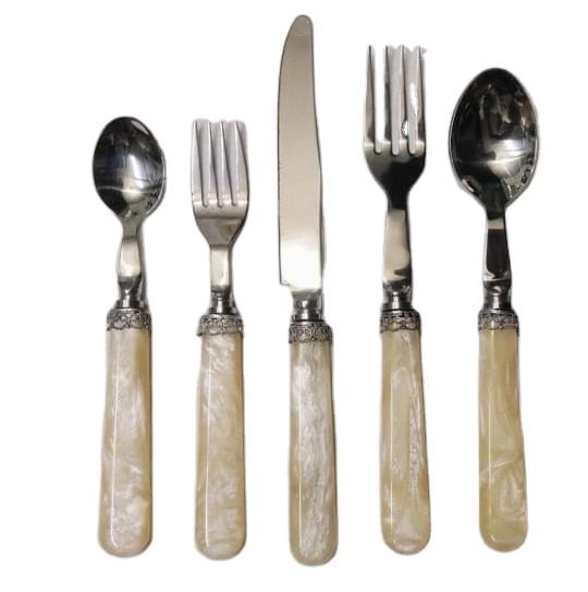 5pcs Food Portable Cutlery 304 Stainless Steel & Bone Inlay Handle Table Fork Knife Spoon Dinnerware Gold Tableware Sets