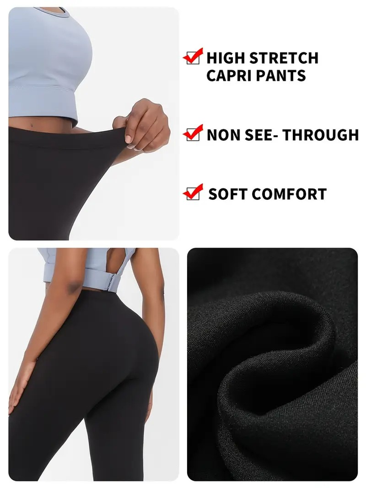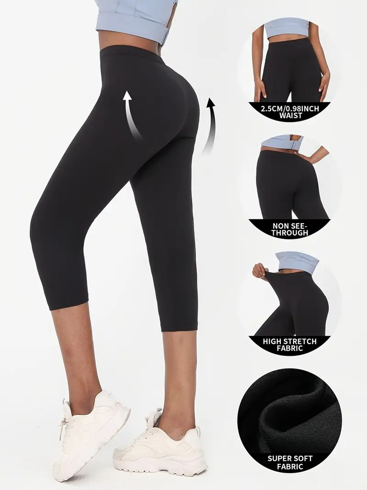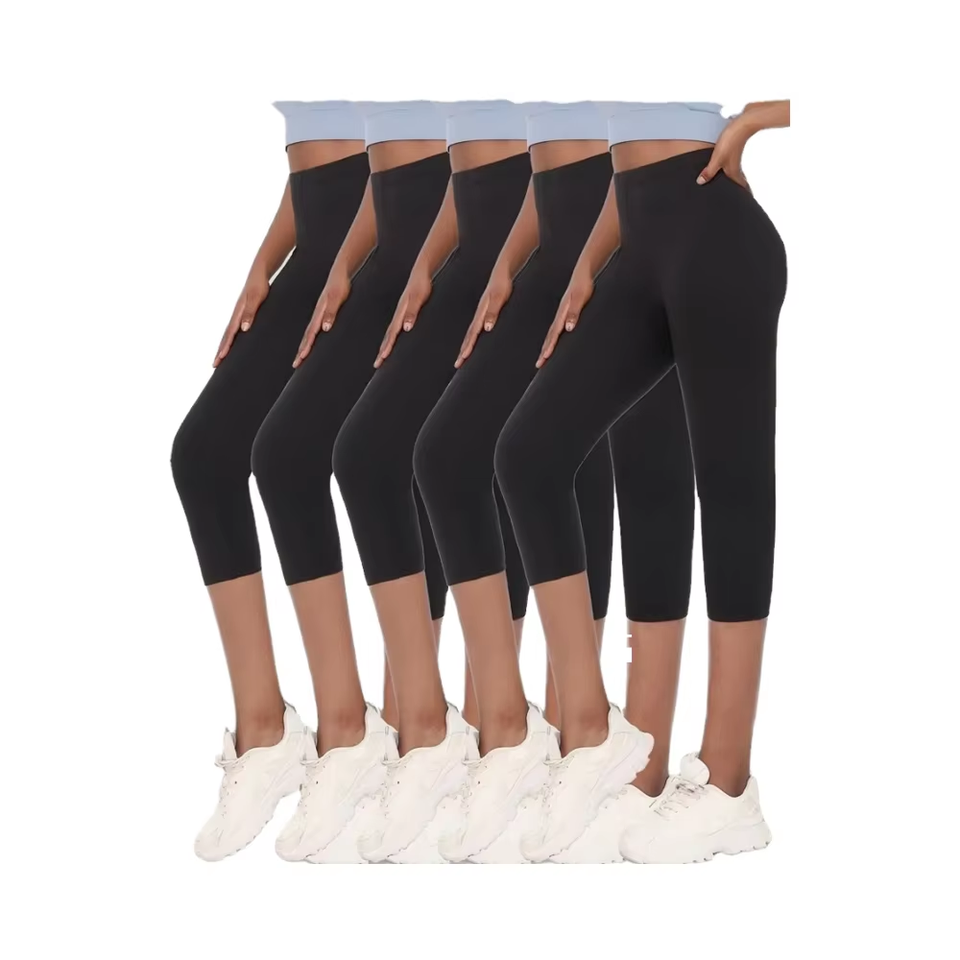 5pcs Super Soft Capri Pants for Women Solid Color High Stretch Workout Leggings for Running Yoga Sports-Casual No See-Through