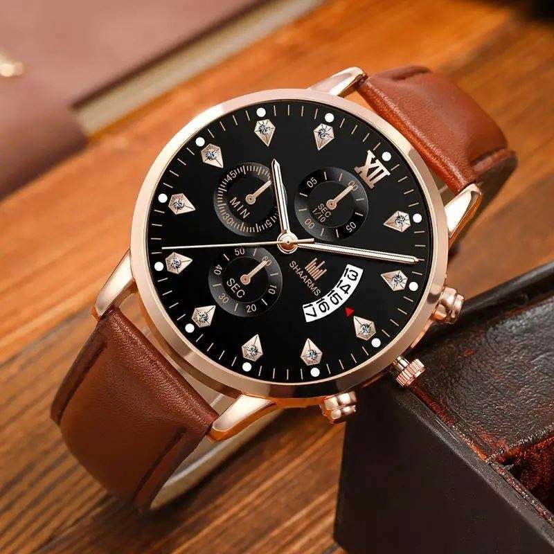 5pcs/set Men's New Watch Suit Cool Three-eye Quartz Watch + All-match Beaded Weave Bracelet XSVO Dial