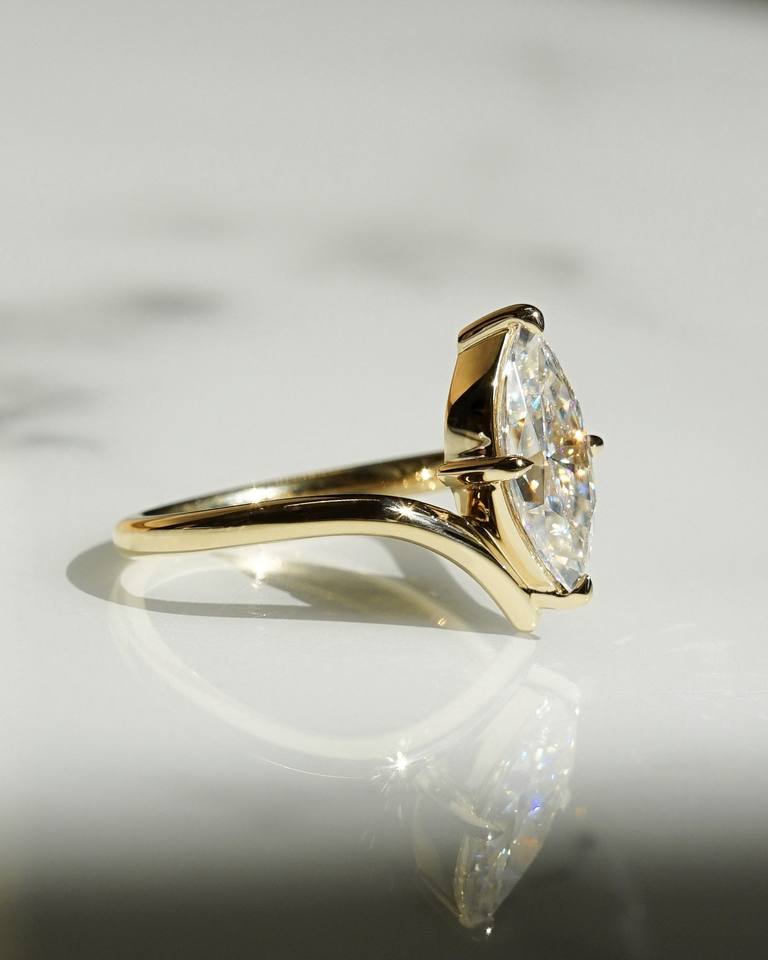 5x10 mm marquise cut CZ solitaire ring with chevron band gold plated engagement jewelry