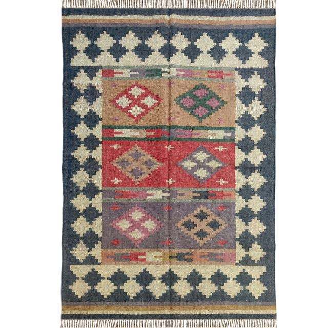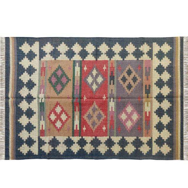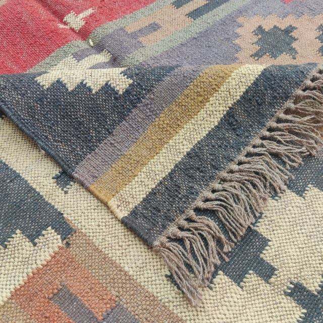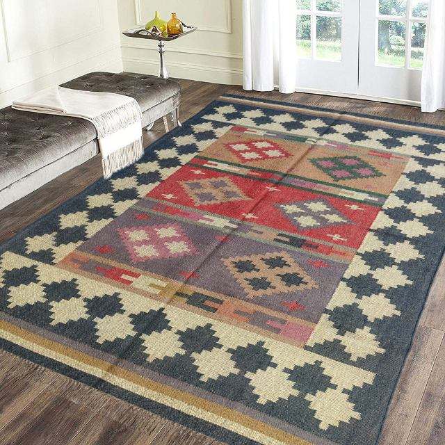 5x8 Feet Wool and Jute Dhurrie Rug Handmade Kilim Carpet for Rustic Living Room and Bedroom Elegant Area Rugs & Sets
