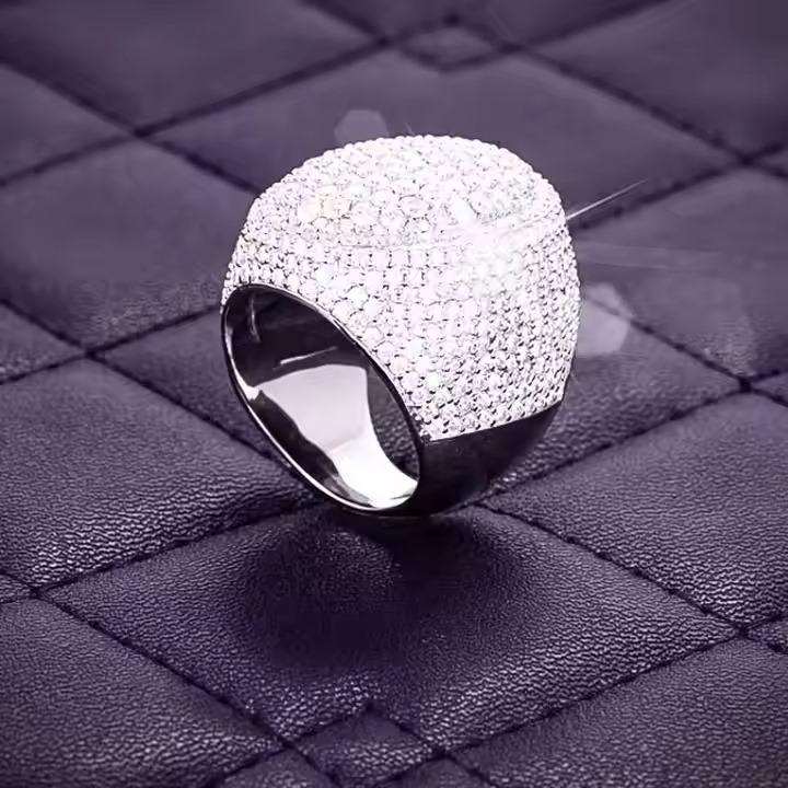 6.00 Carat VVS Moissanite Hip Hop Ice Out Round & Baguette Cut Diamond Ring Engagement Men's 925 Sterling Silver