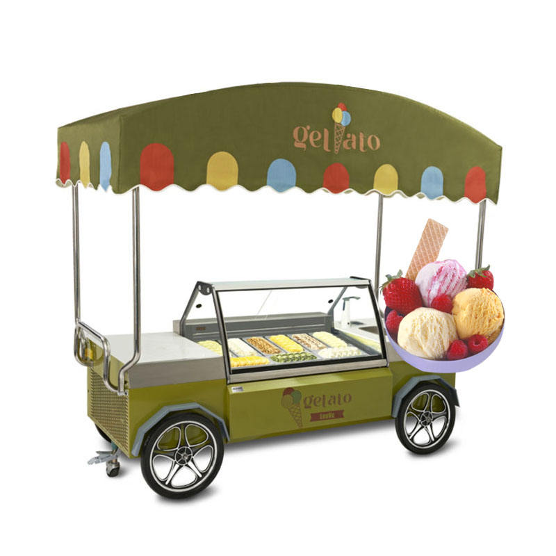 6-12 Pans Ice Cream Stand Push Carts Refrigeration Gelato Display Trolley