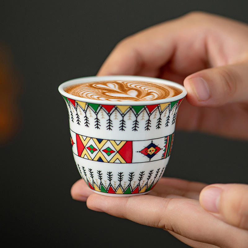 LOMATO 6/12 Piece 70ml Ethiopian/Islamic Arab Style Ceramic Bone China Durable BPA Free Eco-Friendly Dishwasher Safe Handle Tea