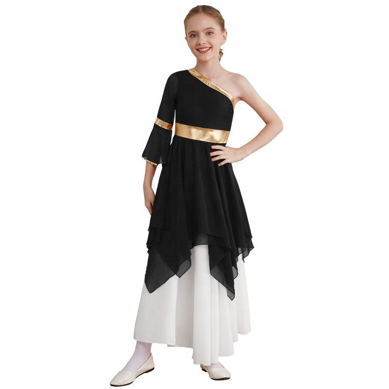 6-16 Dancewear Kids One Shoulder Stage Performance Wear Children's Dance Costumes Girls Lyric Praise Dance Dresses