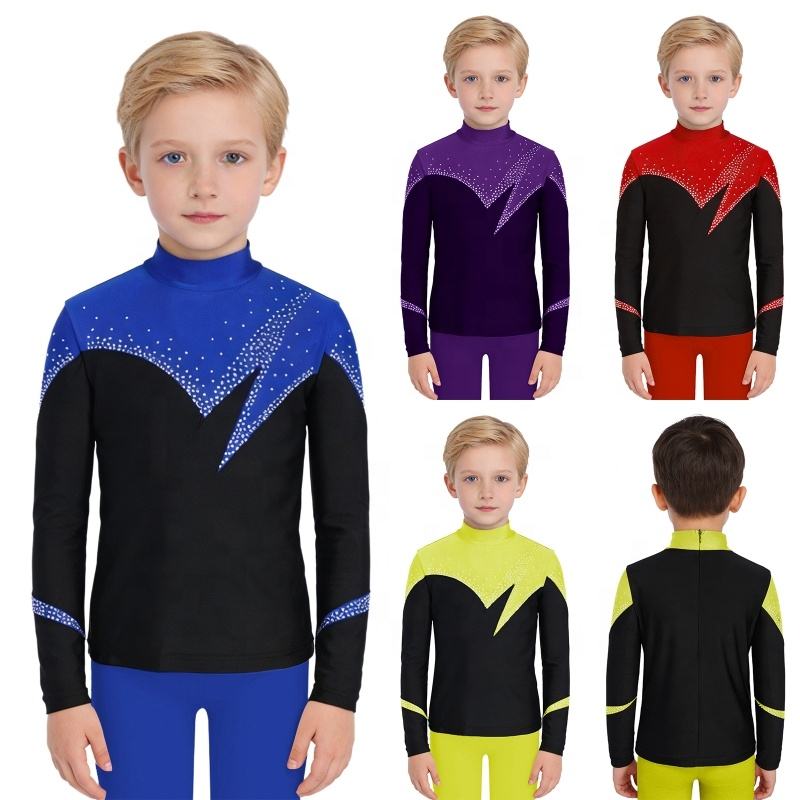 6-16 Kids Boys Figure Skating Costume Tops For Performance Competition Red Lyrical Latin Dance Costumes