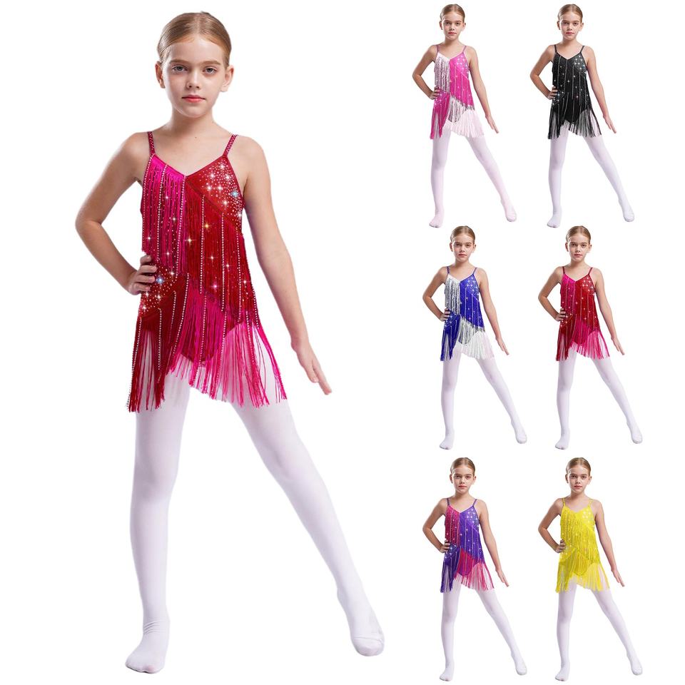 6-16 Kids Contemporary Performance Stage Dance Wear Costume Girls Training Dancewear Performance Wear Latin Dance Dresses
