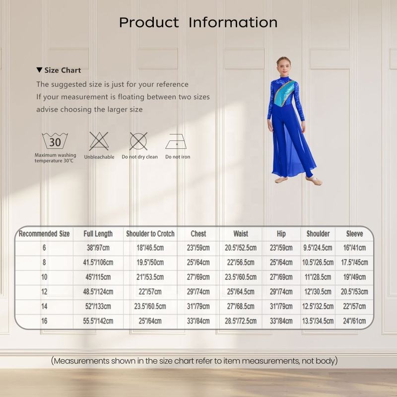 6-16 Kids Girls Ballroom Latin Dance Wear Gymnastics Figure Skating Jumpsuit Chiffon Skirted Unitard Costume Competitions Shows