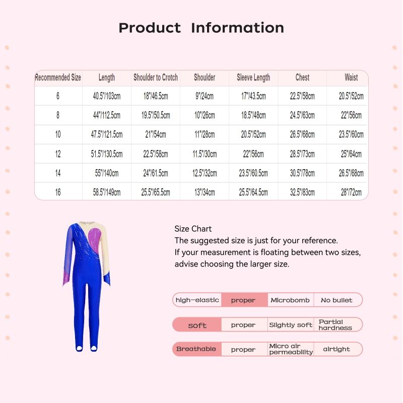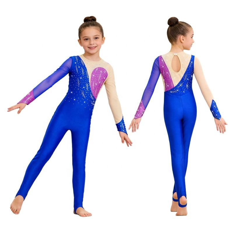 6-16 Kids Girls Latin Samba Dance Gymnastics Jumpsuit Stirrup Style Bodysuit Competition Costumes Modern Dance Costumes