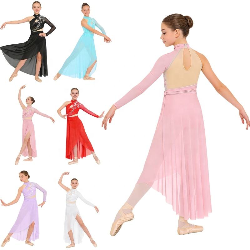 6-16 Kids Girls White Lyrical Dance Costume Dresses Performance Costume Dress For Lyrical Dance Performances Recitals