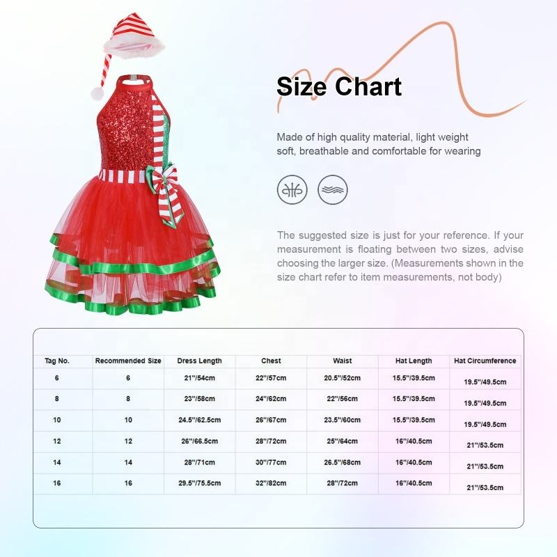 6-16 Kids Sleeveless Sequin Tutu Leotard Children Dress Set With Hat for Holiday Festival Christmas Party Dresses for Girls