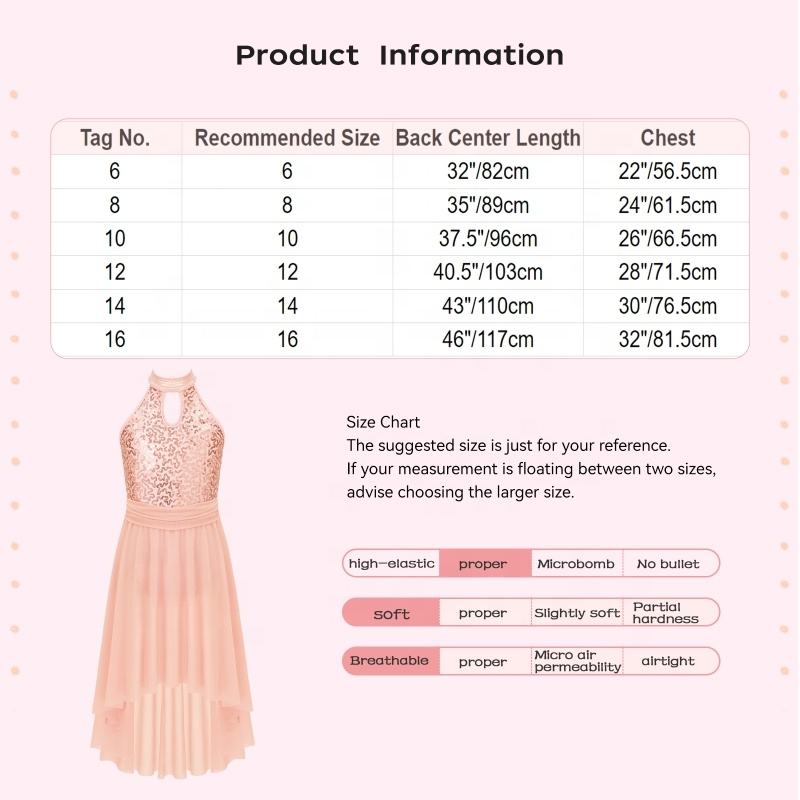 6-16 Kids Training Dancewear Girls Modern Lyrical Contemporary Children Sequin Stage Dance Performance Wear Dance Dresses