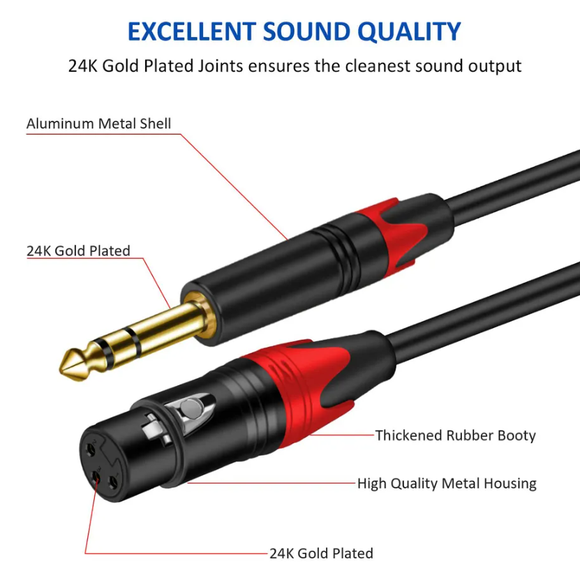 6.35mm 1/4'' TRS to XLR Male 1/4-Inch TRS Male to XLR 3-Pin Male Balanced TRS Cable for Electric Drum Saxophone Effect Pedal