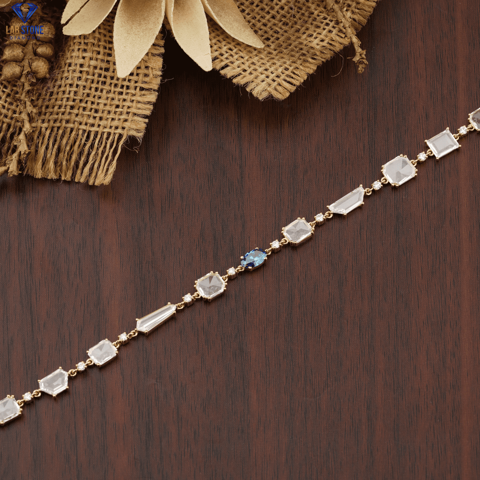 6.38 CT Rose Cut,Round and F.B.Oval Brilliant Cut Diamond Bracelet 18k Rose Gold Wedding Bracelet Cvd/Hpht Diamond Jewelry