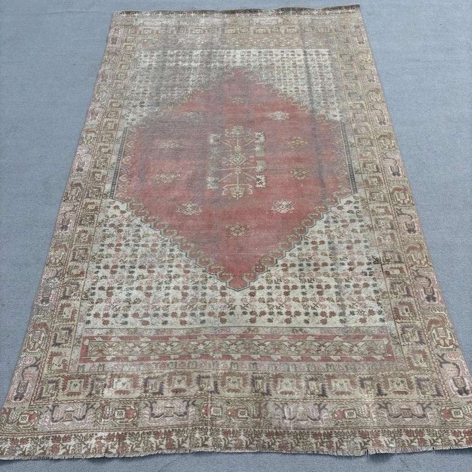 6.3x9.2 ft Rug, Turkish Vintage Rug, Red Wool Rug