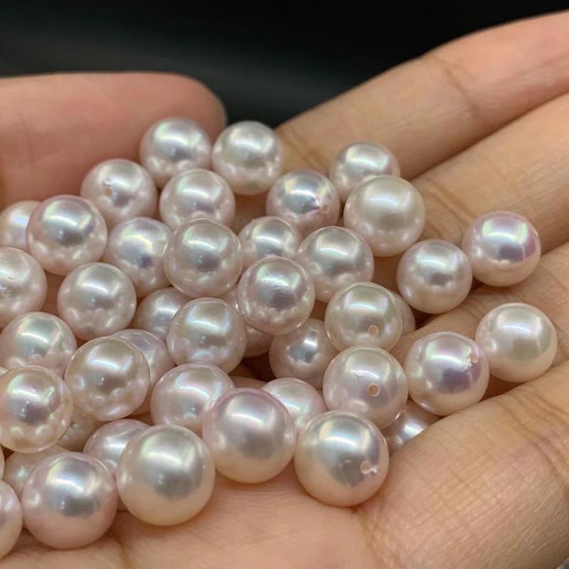 6.5-7mm Natural Seawater Akoya Pearls Strong Light White Brightness Basic Roundness with Slight Flaws Naked Beads Loose