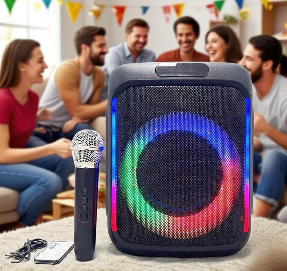 6.5 Inch Wireless Mic Portable Home Theater Stereo Bass Woofer Karaoke Party DJ 20W RGB LED 5.0 3600mAh 5-10h Playtime Built-in