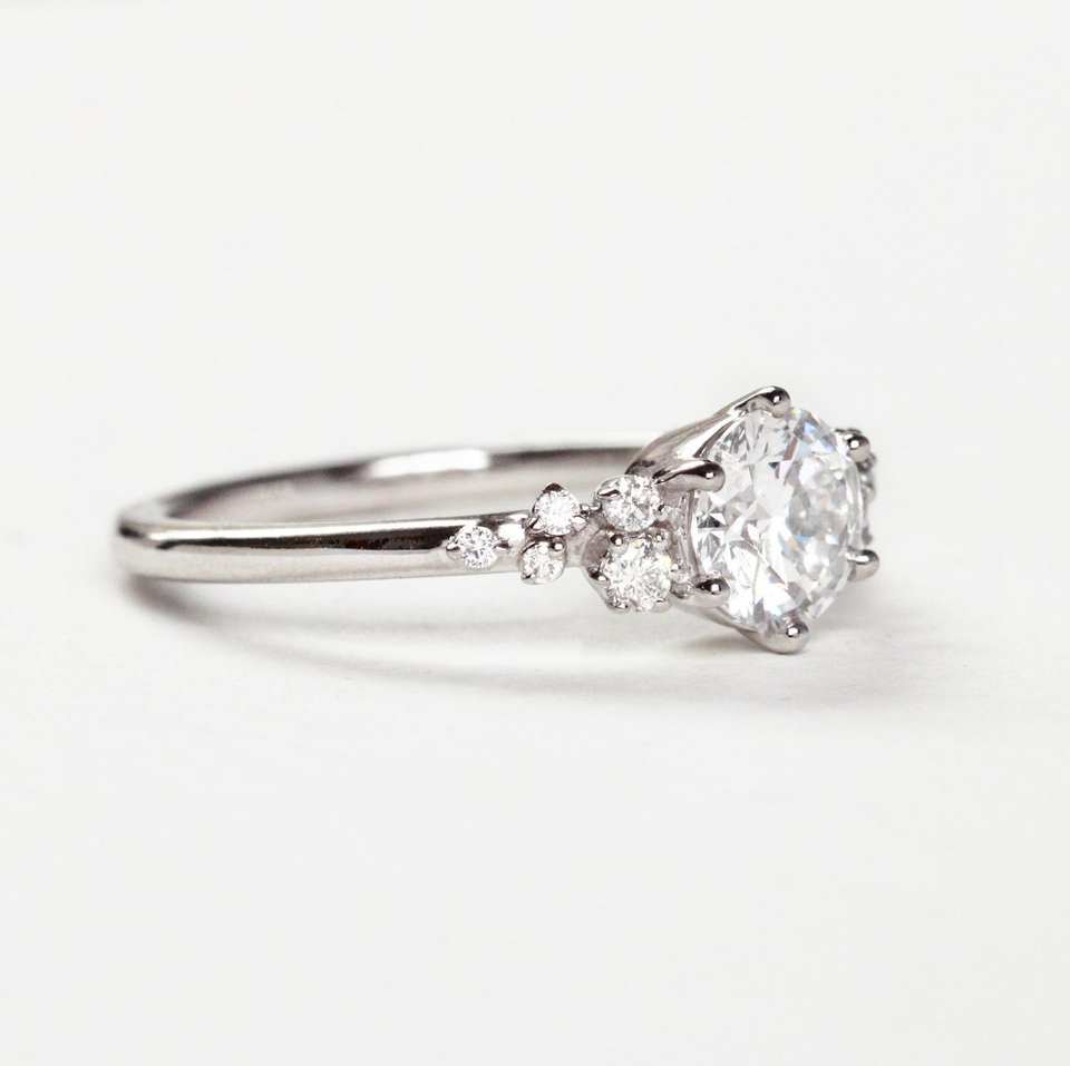 6.5mm Round Cut White CZ Engagement Ring in Silver with Side Stones Bridal Promise Jewelry Wholesale Fashion Custom OEM ODM