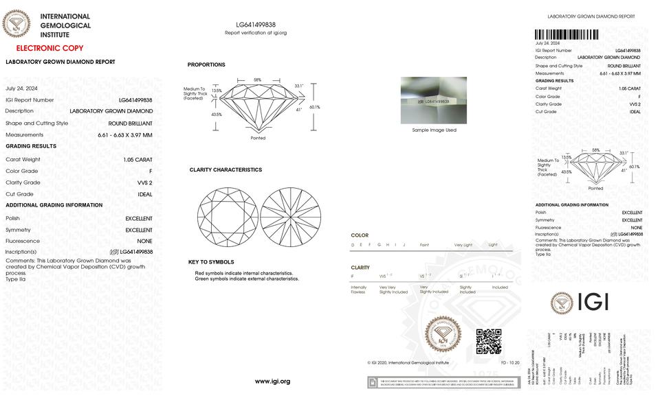 Model Number:ROUND CVD 1.05 CT. F-VVS2
