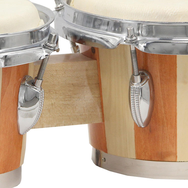 6-7/7-8 inch Solid Wood Bongo Drum Set - Handmade Sheepskin Percussion Instrument for Adults & Kids Durable One-Piece Design