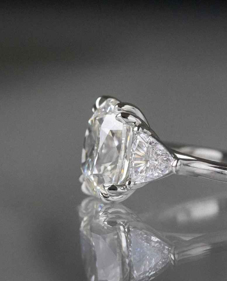 6.75 Ct Cushion Cut Moissanite Trilogy Ring with Triangle Accents Double Four Claws and 2.2 Millimeter Solitaire Band for Women
