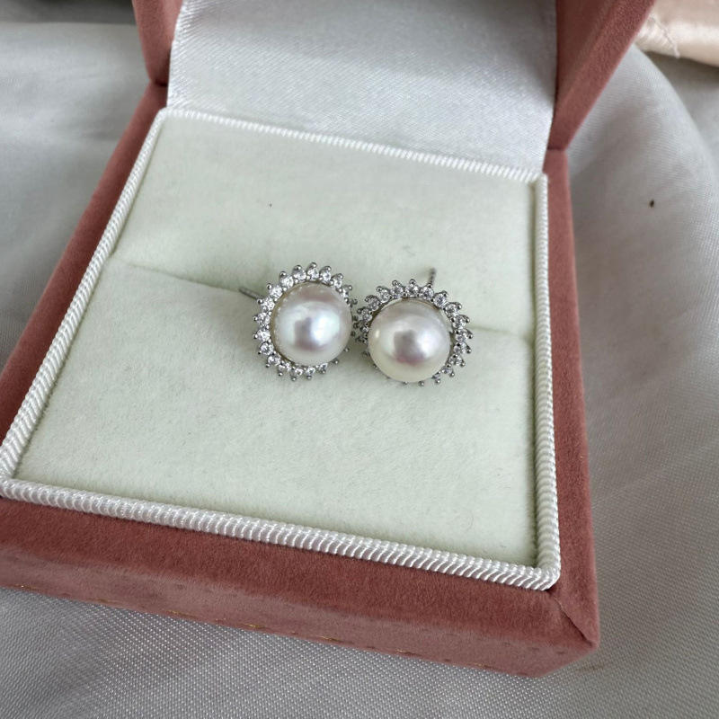 6-7mm Zhuji Freshwater Pearl Stud Earrings S925 Pure Silver with Sunflower Design Genuine Extremely Strong Light