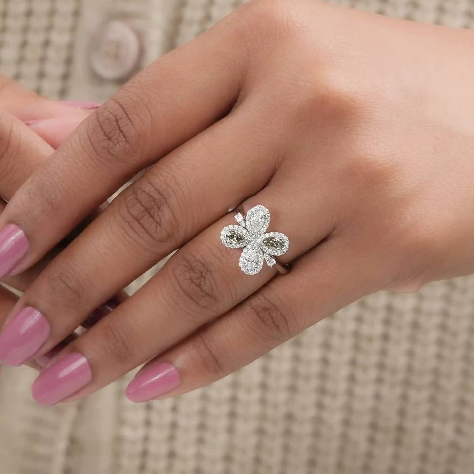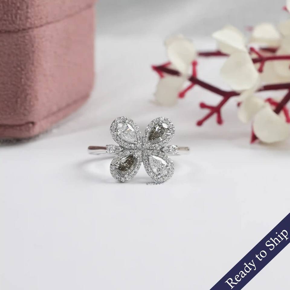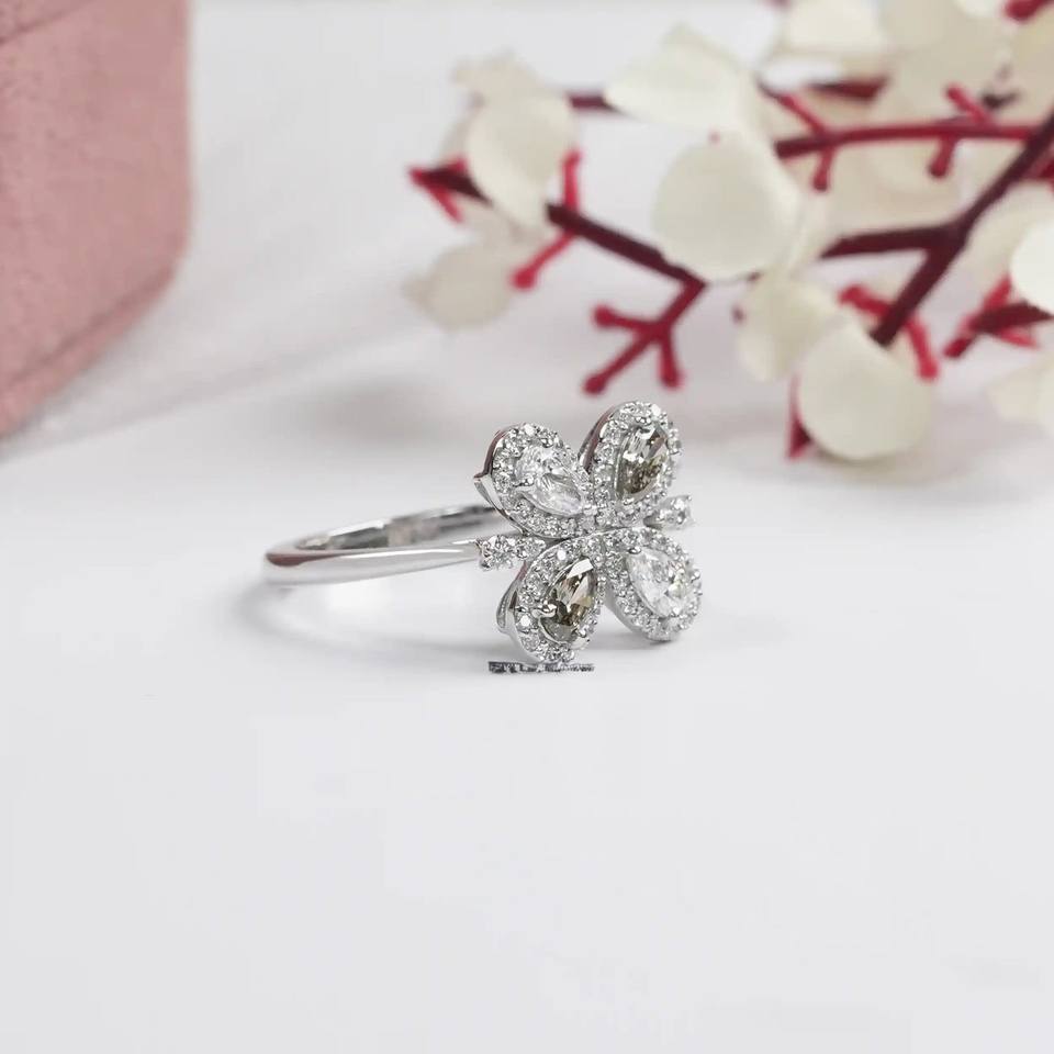 6*9mm Unique Floral Shape Olive Pear Cut Halo Lab Grown Diamond Ring Fine Jewelry Customize Diamond Ring Solid Gold for Her