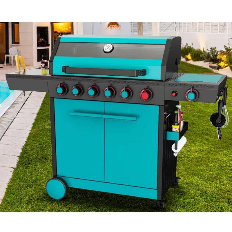 6-Burner Propane Gas Grill with Side Burner Cabinet Style Outdoor BBQ Grill for Barbecue Grilling and Backyard Cooking