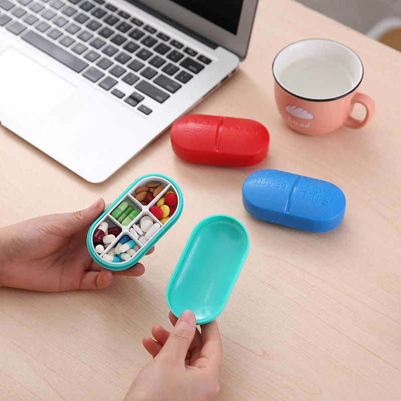 6-Compartment Portable Pill Organizer Box Sealed Travel Medicine Case