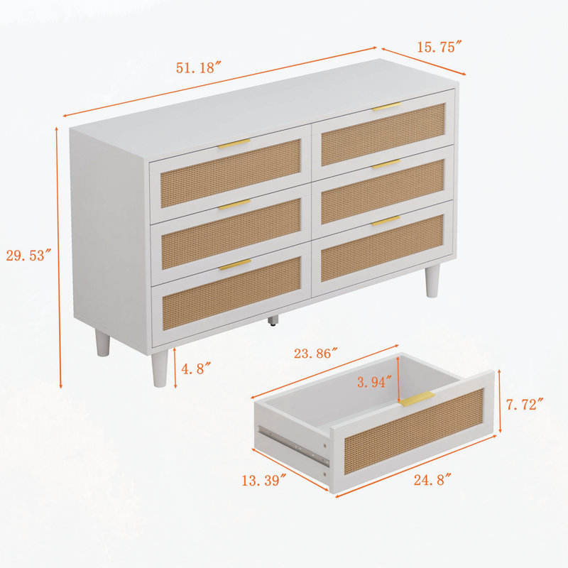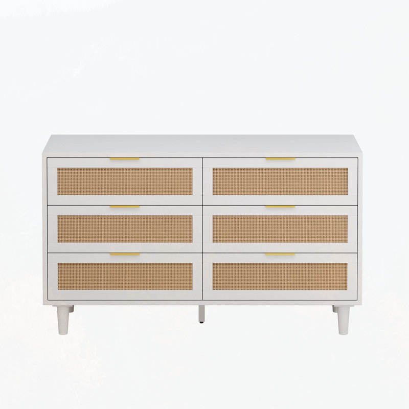 6-Drawers 51.18\" Rattan Storage Cabinet Bohemian Dresser with Rattan Drawers for Bedroom Storage