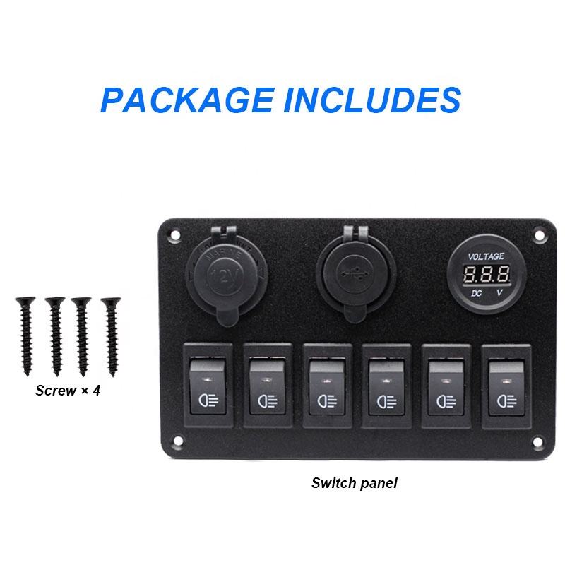 6 Gang Blue Rocker Switch Panel Circuit Breaker 3.1A Car USB Charger LED Voltmeter Cigarette Lighter Waterproof Car Marine Boat