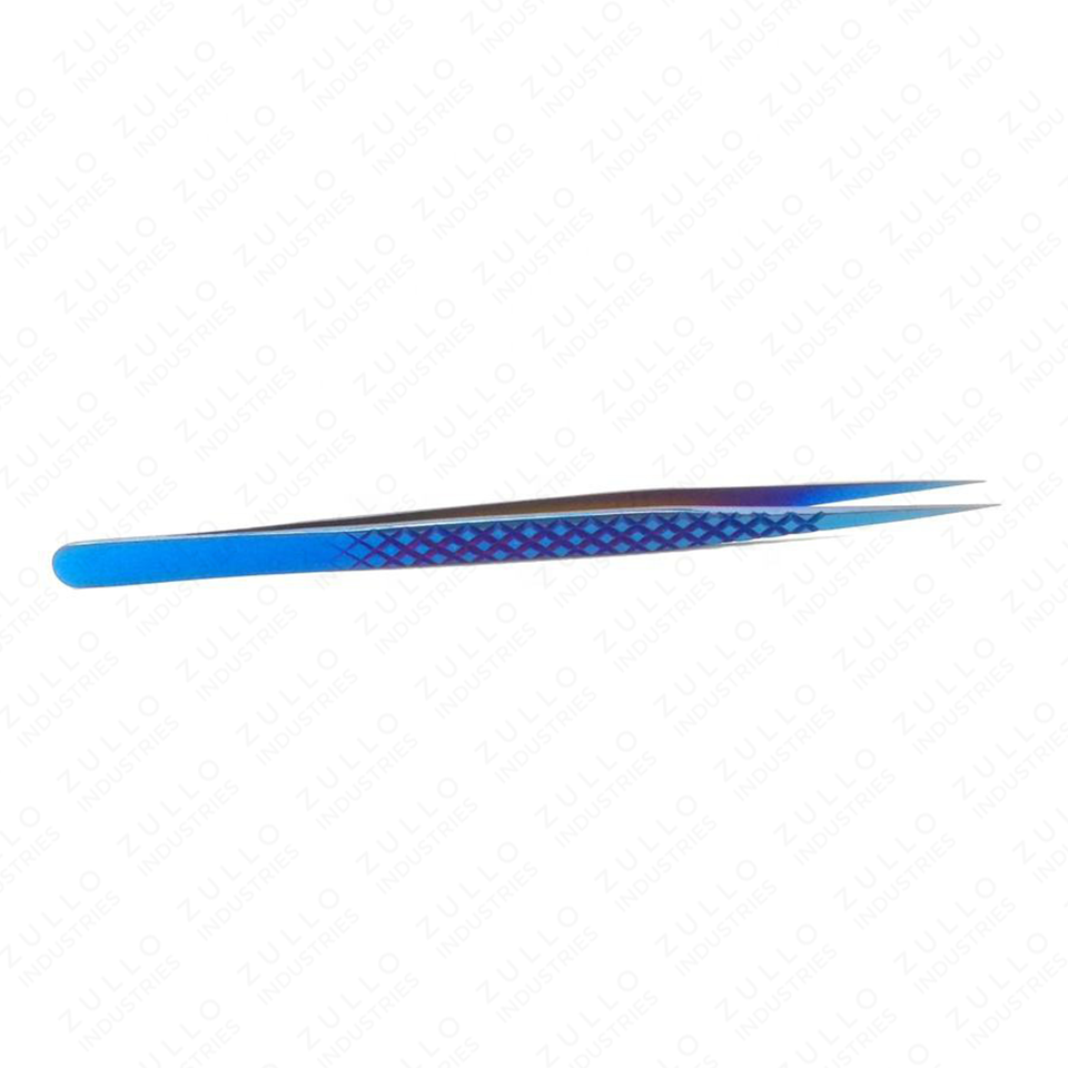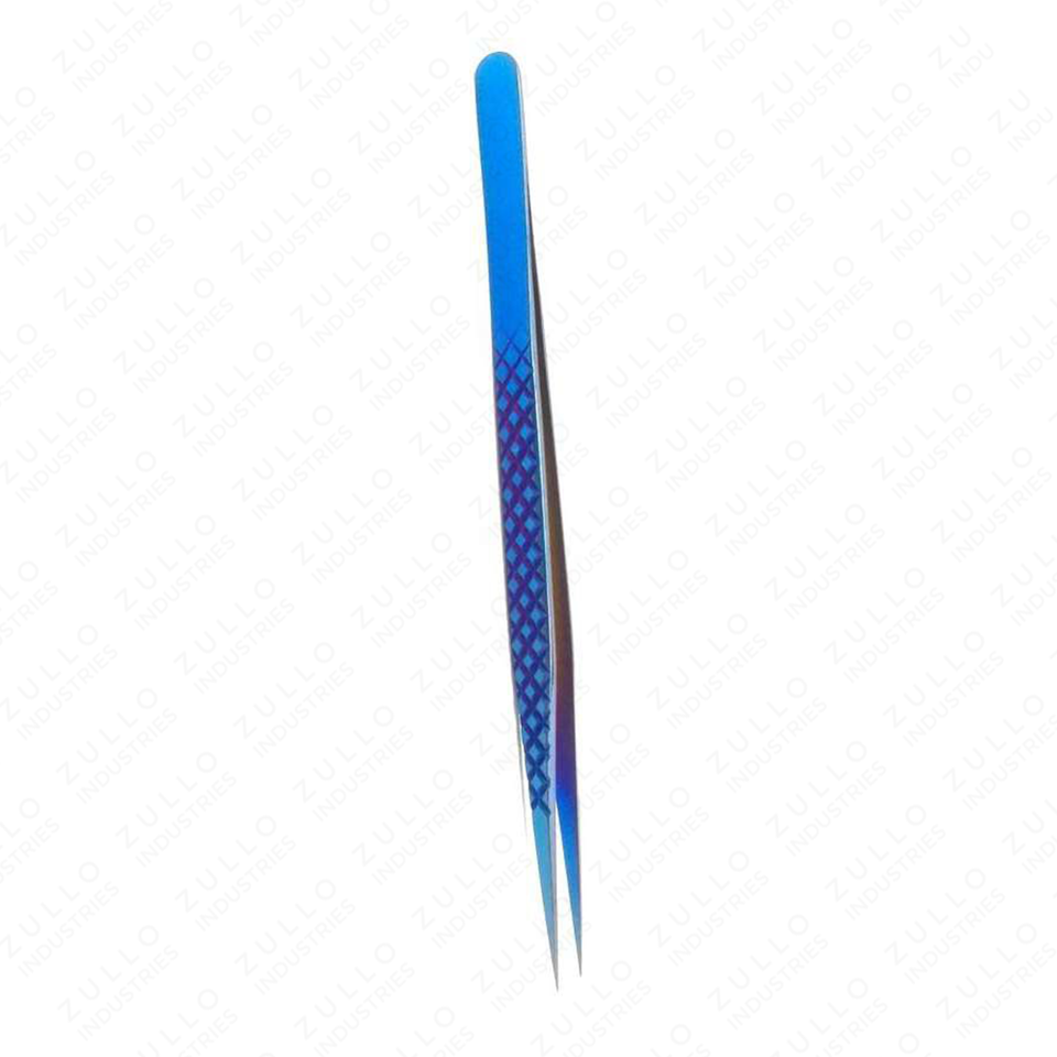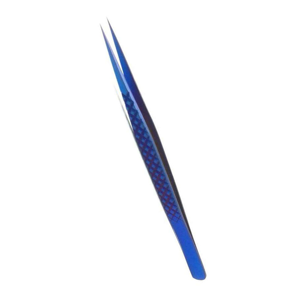 6 Inch Blue Gradient Diamond Grip Eyelash Tweezers Stainless Steel Precision Isolation Pointed Tip Lash Tool