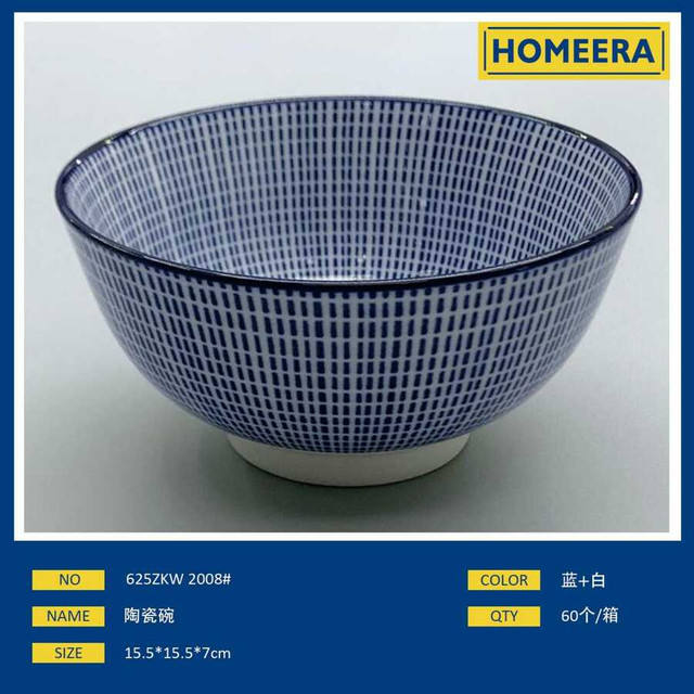 6 Inch Blue and White Pattern Ceramic Soup Bowls 362g Set Wholesale Options Available for Serving Food