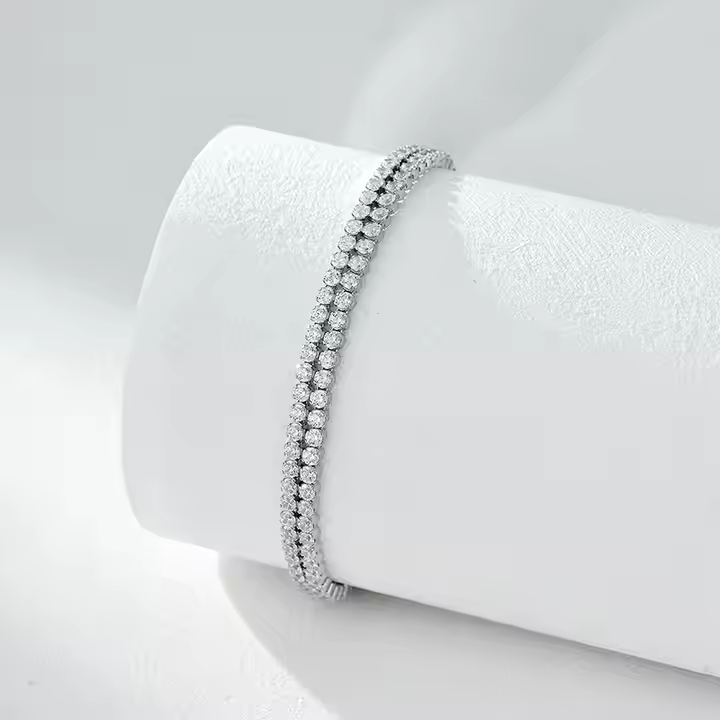 Two-Lane 6-Inch Cut Moissanite Diamond Iced Silver 10K Gold Tennis Bracelet Perfect Fashionable Jewelry Gift for Men and Women