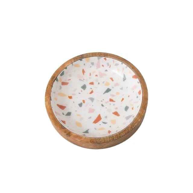 6 Inch Round Wooden Printed Bowl Mango Wood Bowl Set Design Dishwasher Safe Natural Dinnerware Salad Server Set Best Quality