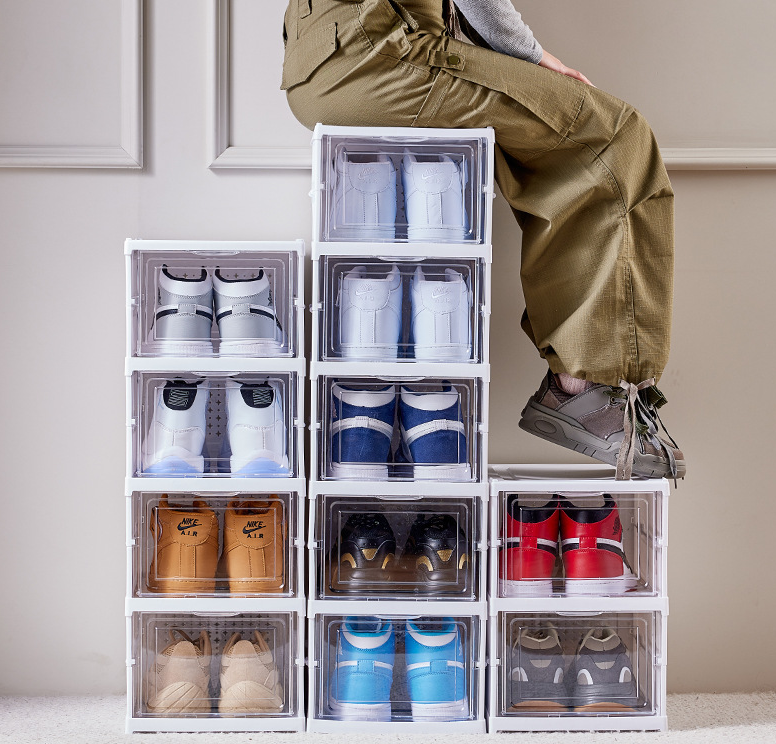 6 Layer Foldable Plastic Shoe Rack Magnetic Door Organizer Collapsible Clear Portable Shoe Cabinet Stackable Sneaker Shoe Box