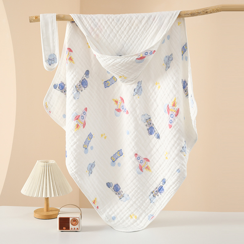 6 Layers Hooded Bath Towels Organic Muslin Cotton Newborn Baby Burp Clothes