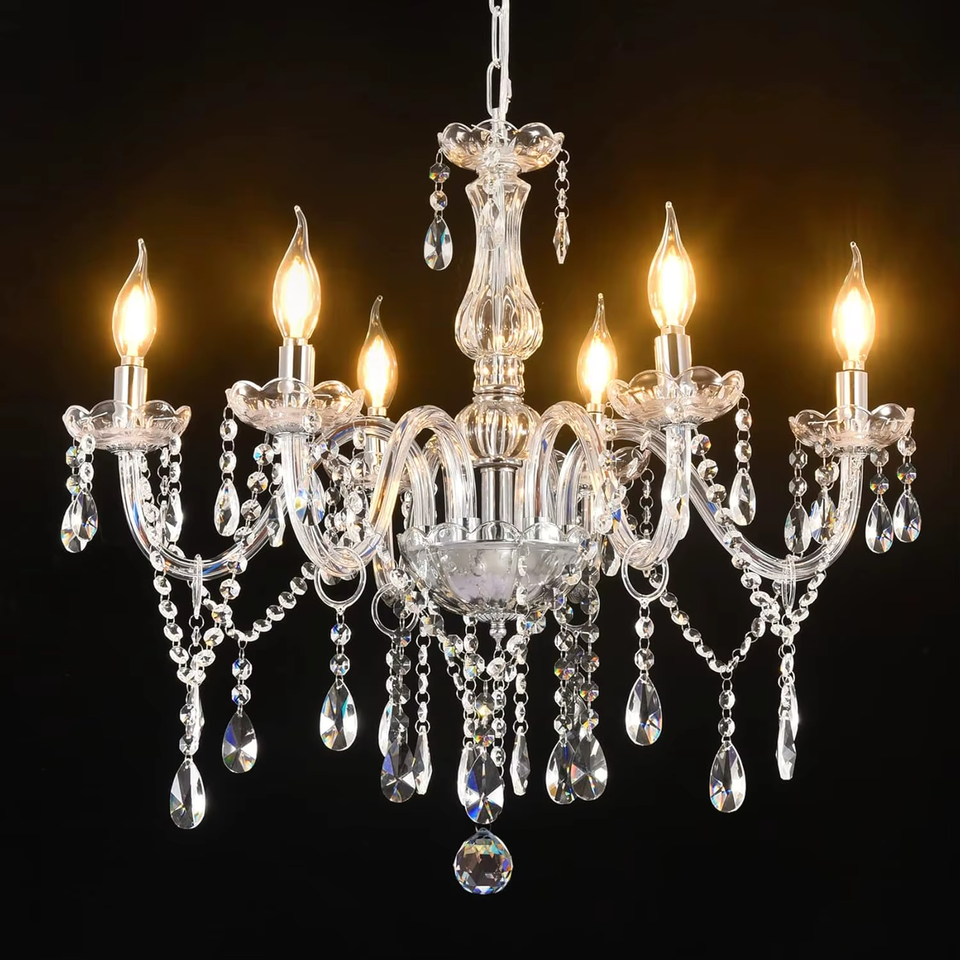 6-Light K9 Transparent Pendant Lamp Crystal Wedding Chandelier Candles Inspired Adjustable Height