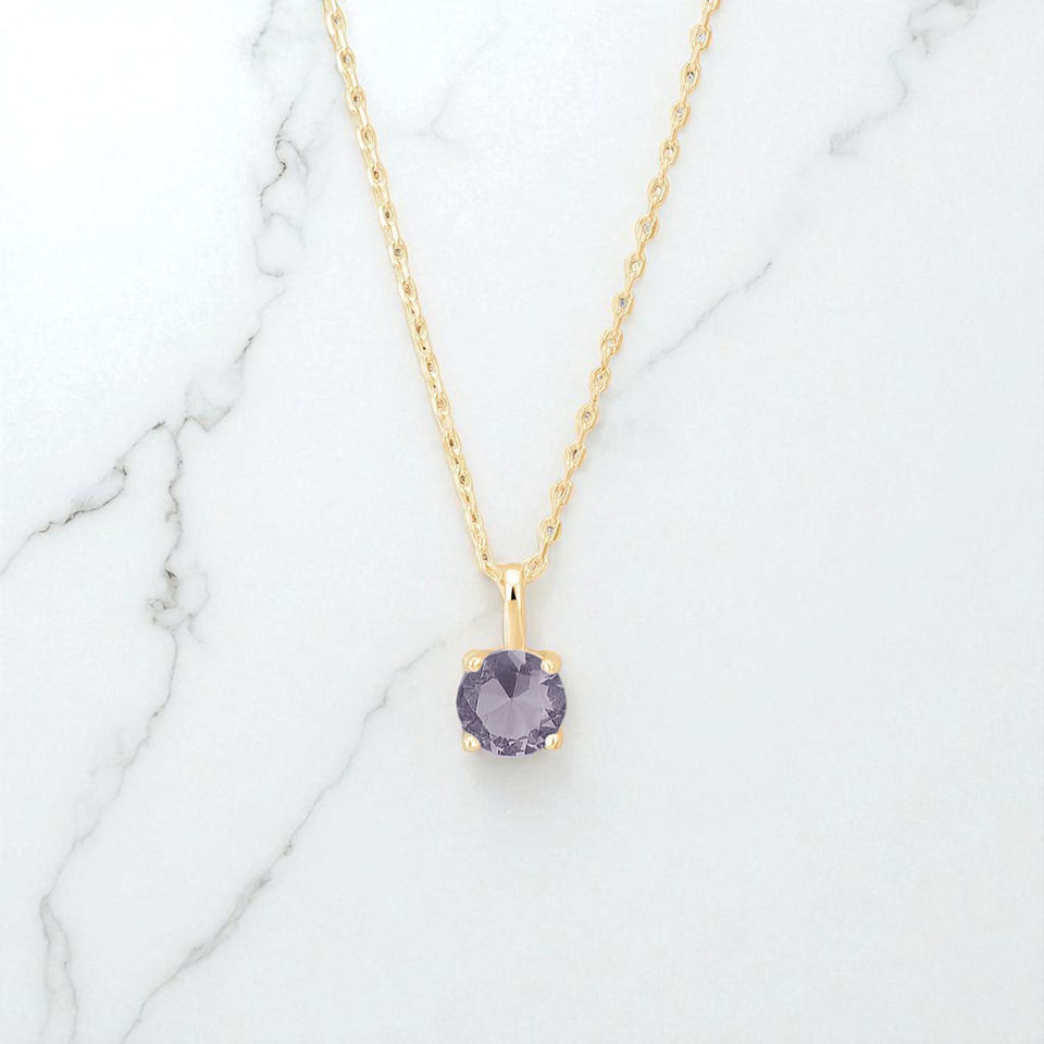 6 MM Round Light Amethyst Birthstone Prong Set Charm Necklace