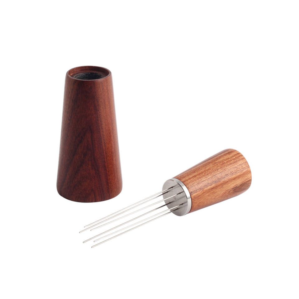 6 Needles Espresso Distribution Tools, Natural Wood Handle and Stand Coffee Distributor, Espresso Coffee Stirrer