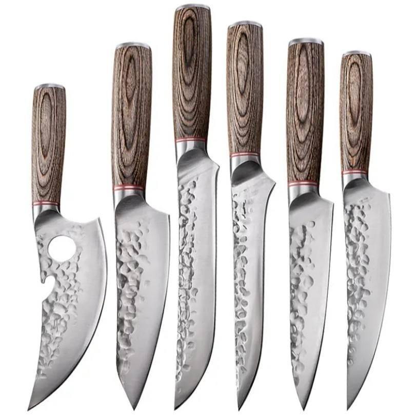 6 PCS Hand Forged Japanese Chef Boning Utility Knives Set Stainless Steel with Wood Handle for Kitchen & Camping