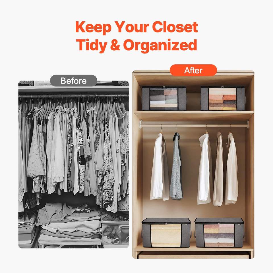 6 Packs 60L Oversized Grey Storage Bags for King Comforter Bedding Pillow Sheet Sturdy Fabric Clothes Containers
