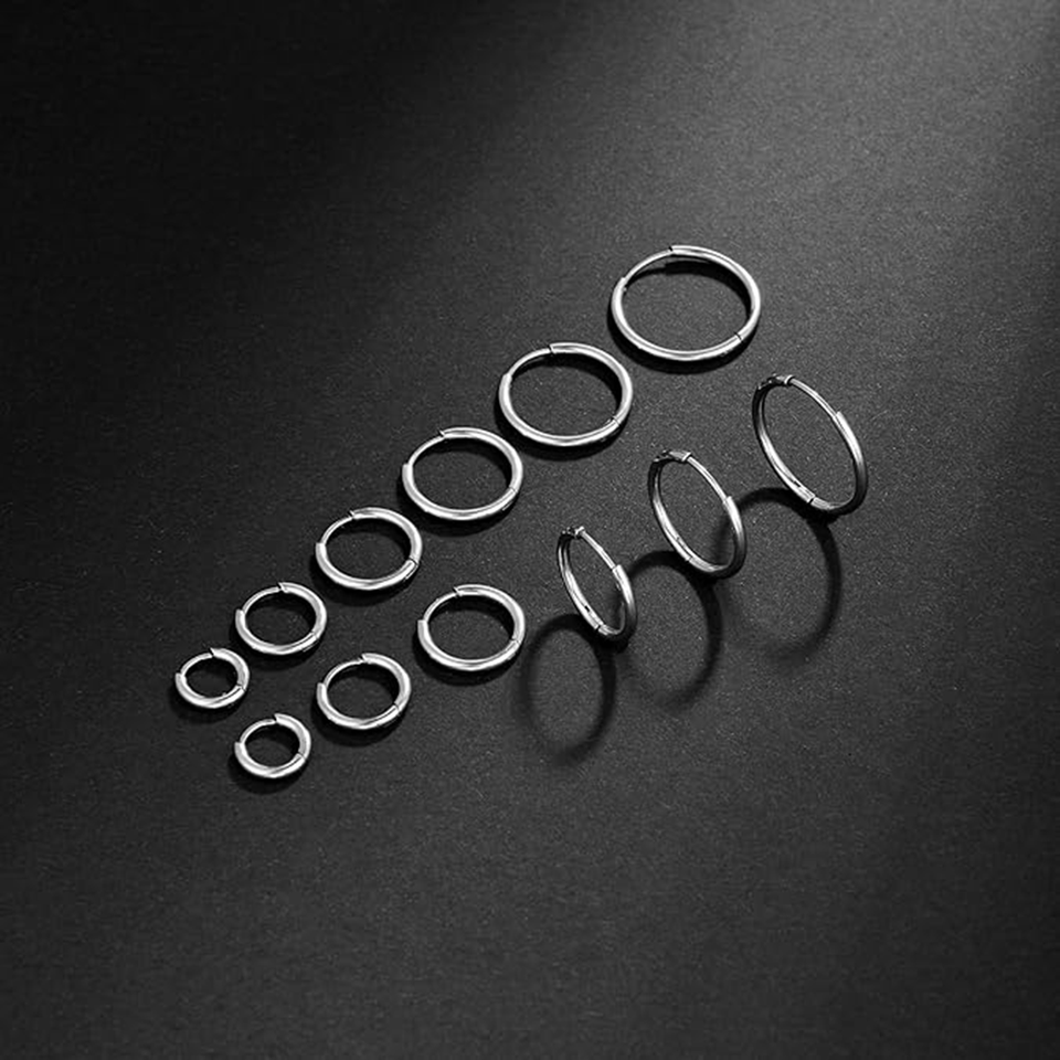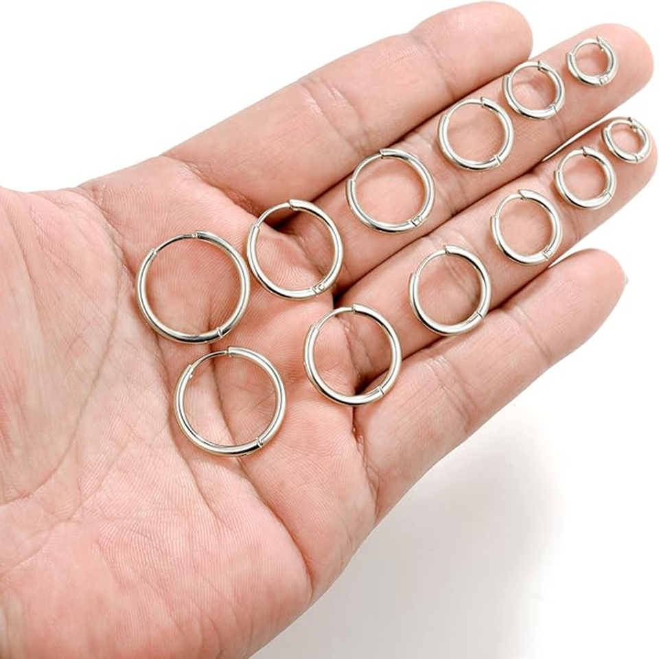 6 Pairs 1.5mm Thick Stainless Steel Huggie Cartilage Helix Lobes Hinged Sleeper Tiny Hoops Earrings for Men Women Silver Tone