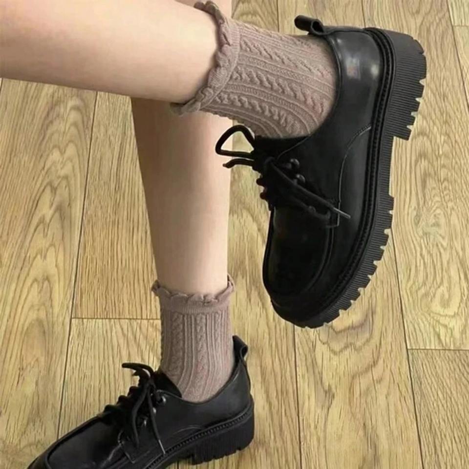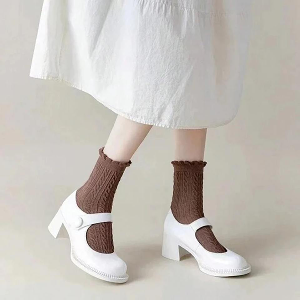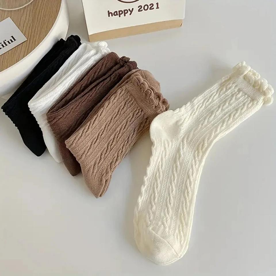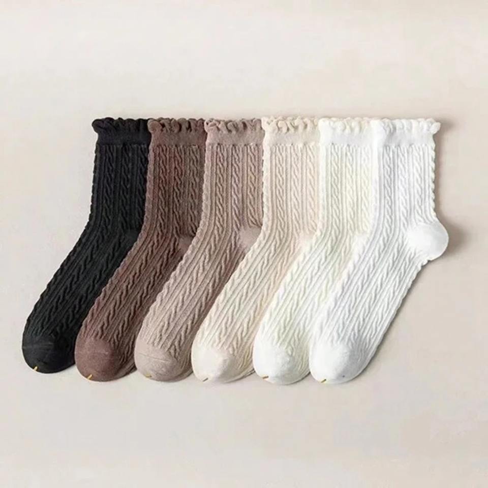 6 Pairs of Knitted Mid Length Stockings for Women's Autumn Winter Cute Fashionable Lolita Versatile Lace Ruffled Short Socks